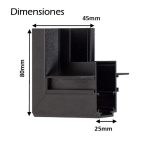 - Medidas: A: L 80mm B: 45 mm C: 25 mm