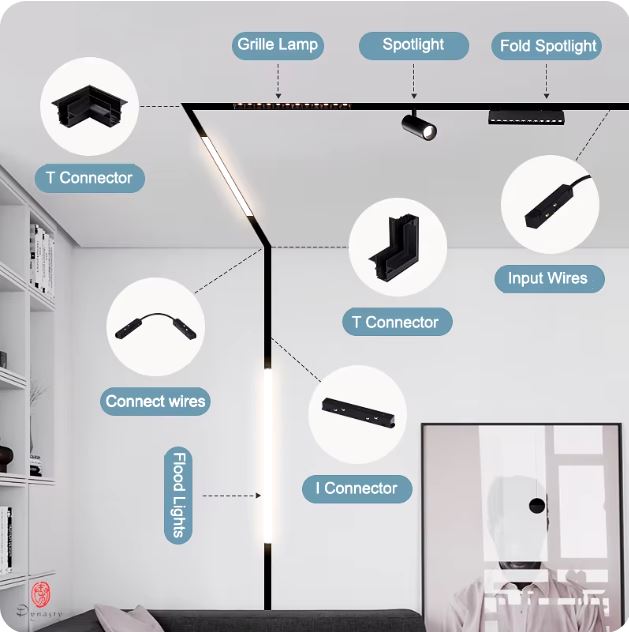 Foco para riel magnético, las medidas varían según posición.