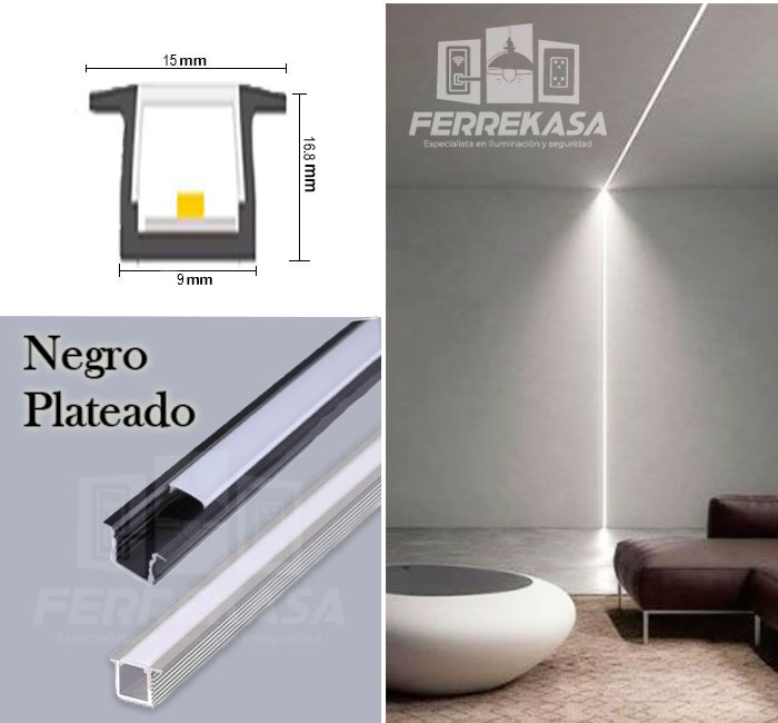 Perfil De aluminio Empotrado 15 x 16.8 x 9 mm Para Cinta Led